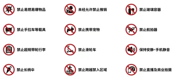 ❌ 玻璃瓶、大件行李、长柄尖头伞(易造成安全隐患)